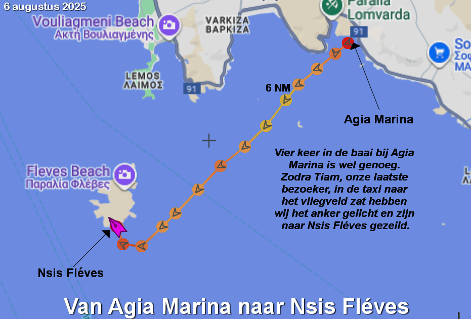 Van Agia Marina naar Nsis Fléves (onbewoond) (6 augustus)