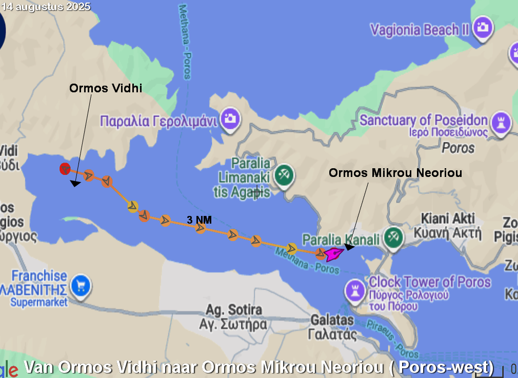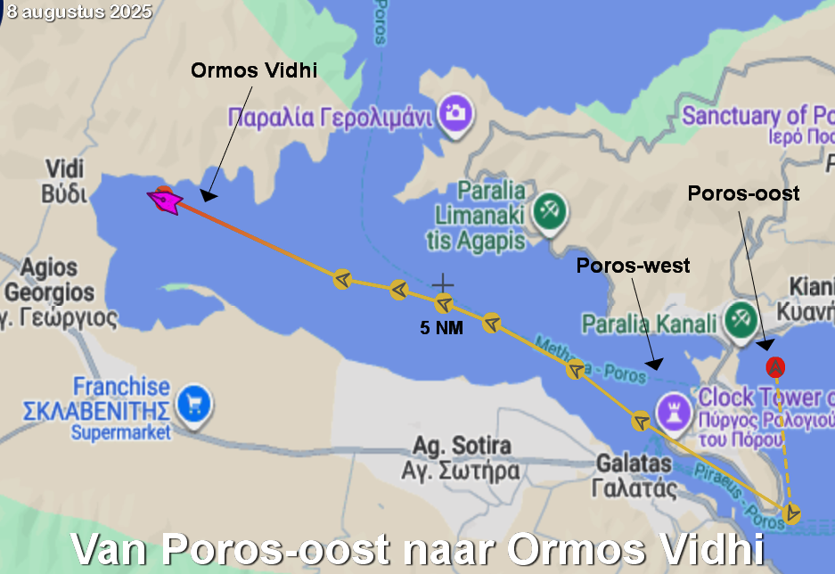 Van Ormos Vidhi naar Poros-west (13 augustus)