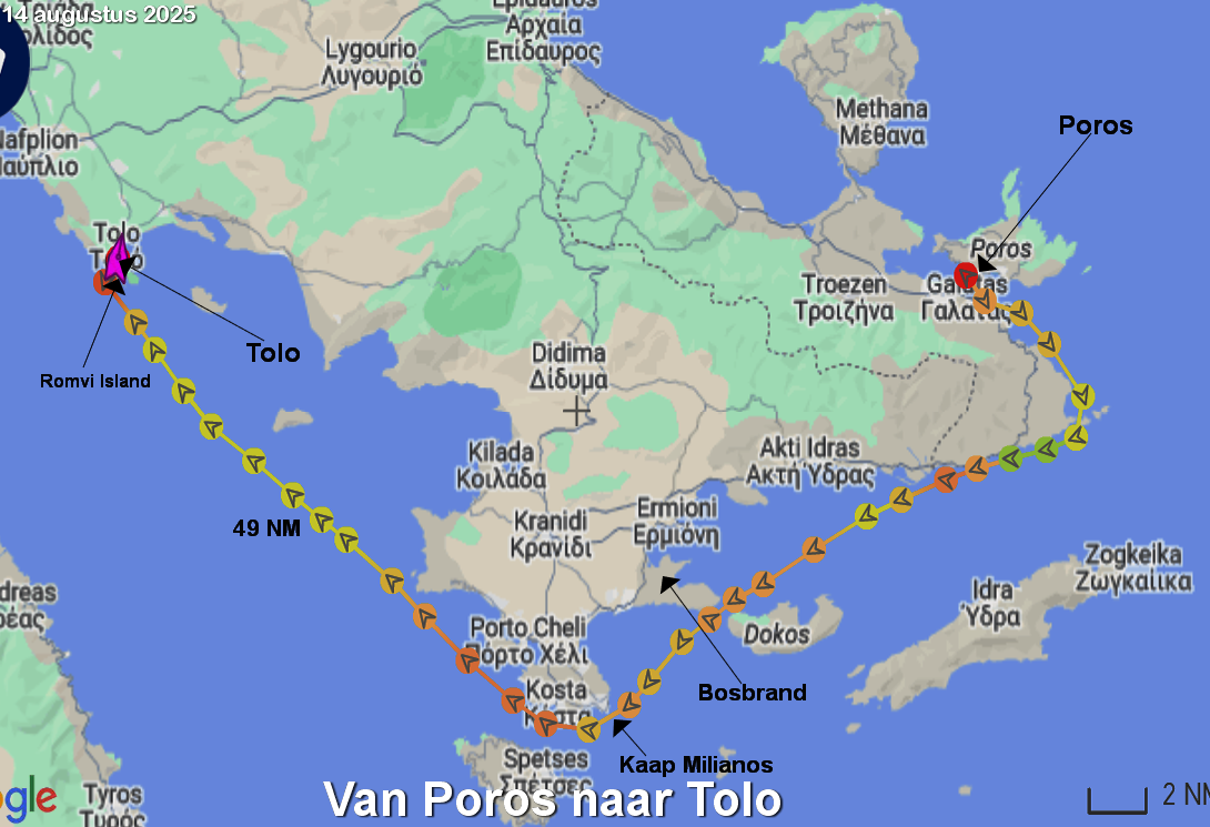 Van Poros-west naar Tolo (14 – 15 augustus)