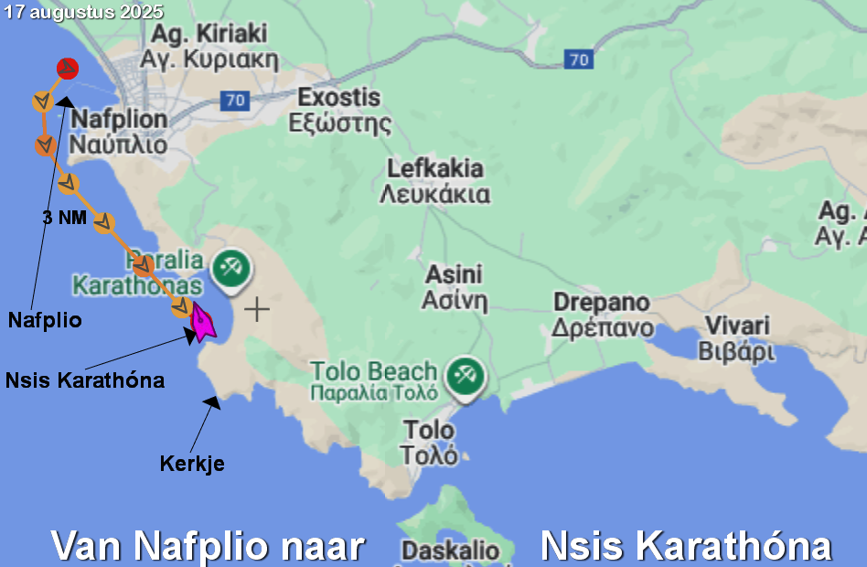 Van Nafplio naar Nsis Karathóna (17 – 18 augustus)