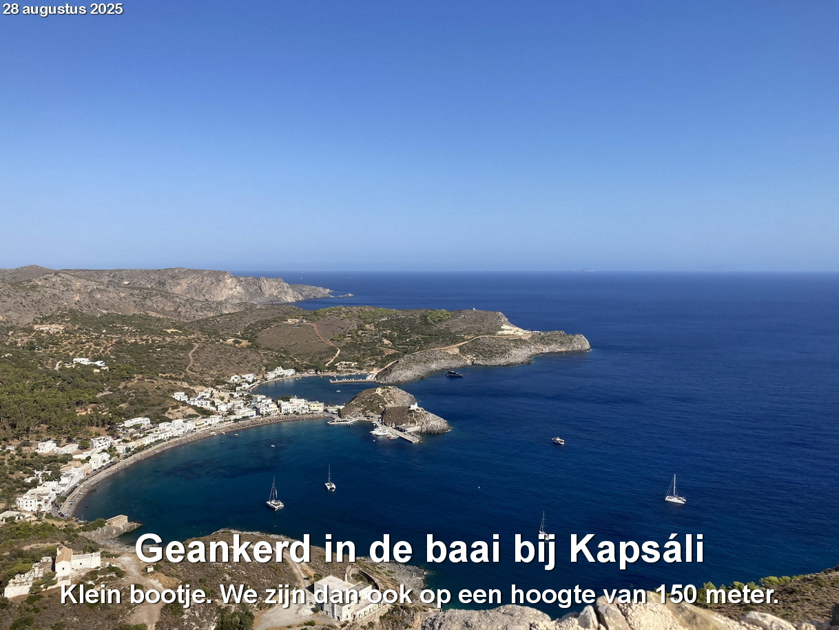 De volgende dag zeilen we met alleen een voorzeil naar Kapsáli, de zuidbaai van Kithira.