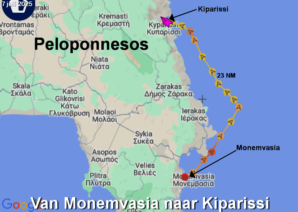 Van Monemvasia naar Kiparissi met de code zero (7 juli)