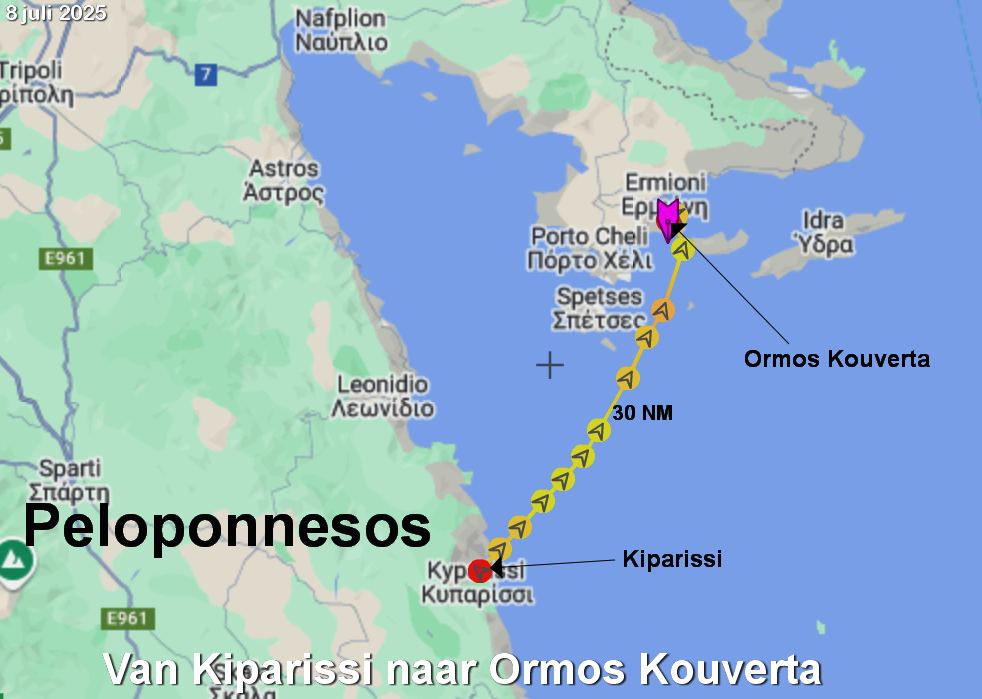 Van Kiparissi naar Ormos Kouverta in de buurt van Ermioni (8 juli)