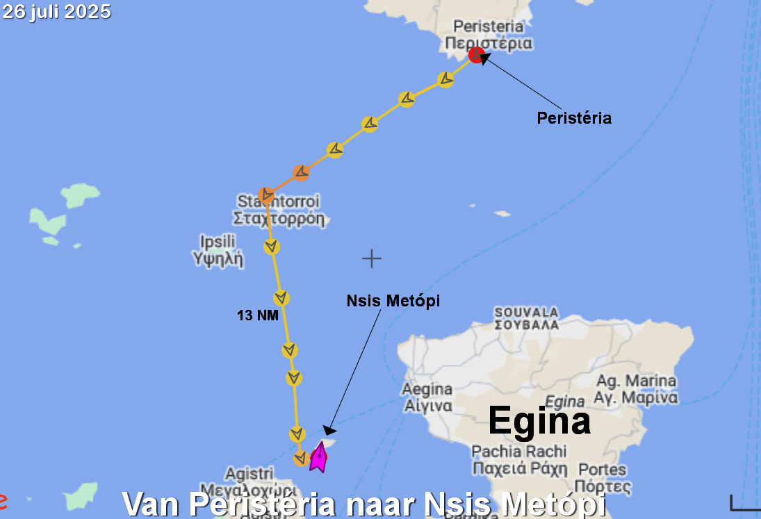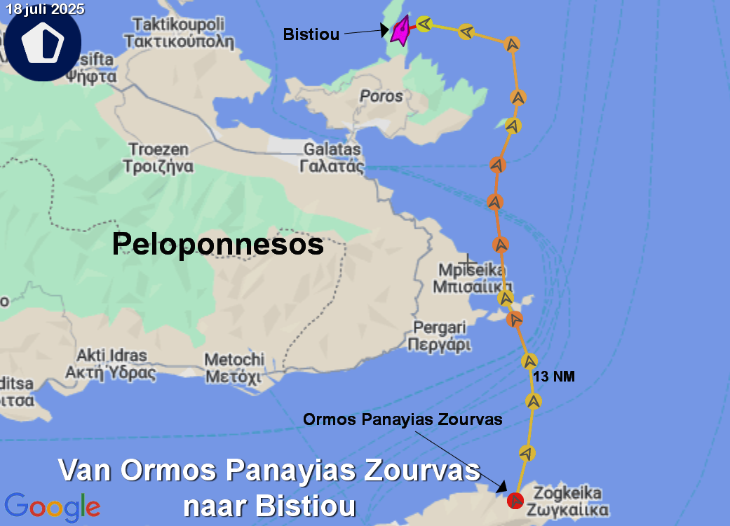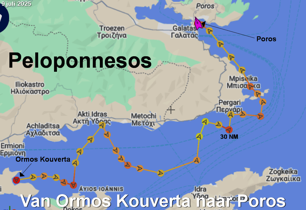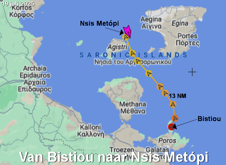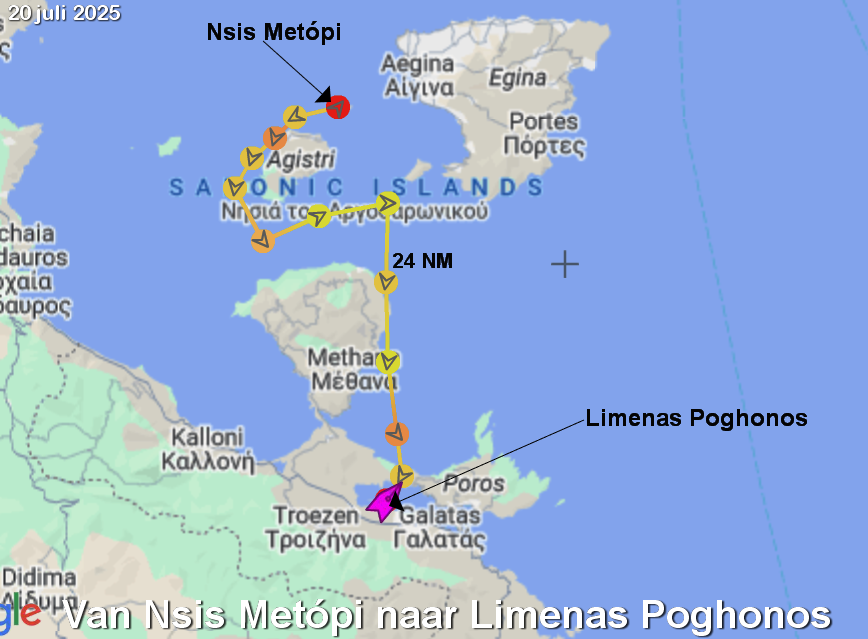 Van Nsis Metópi naar Limenas Poghonos, west van Poros (20 juli)