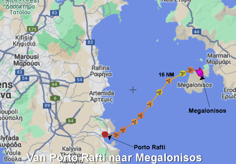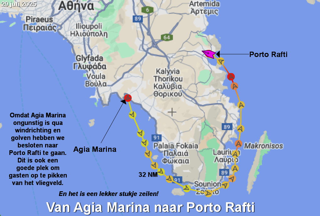 Van Agia Marina naar Porto Rafti voor de volgende gast (29 juli)