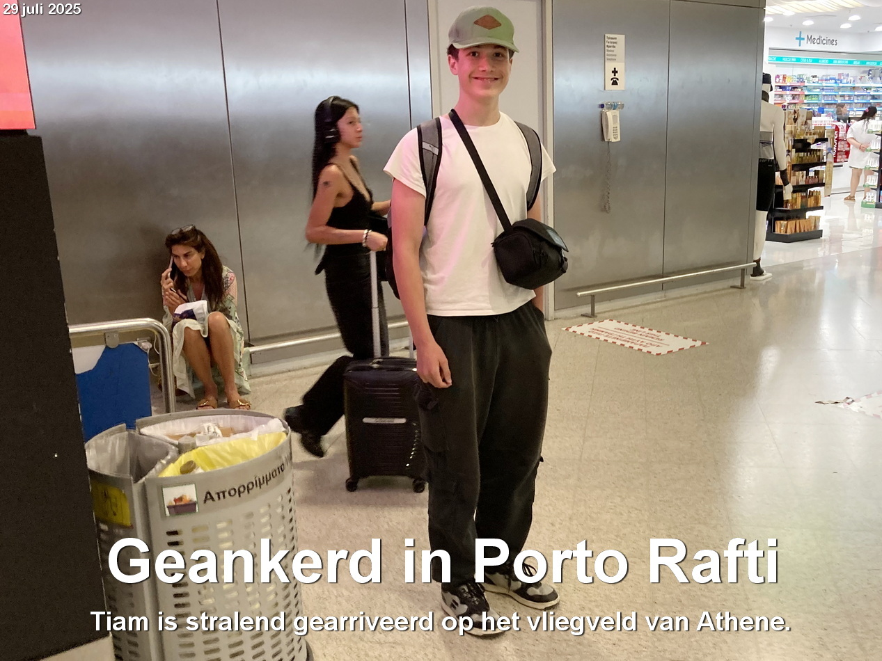 Al vroeg ben ik wakker en de boot ligt nog steeds te hobbelen. Het waait hard. Ik bekijk de windvoorspellingen. Daarna maak ik Henk wakker. Met het voorstel te gaan zeilen naar Porto Rafti. Dat is ruim 30 mijlen. Met deze wind zijn we er snel. Daarvandaan kan ik onze volgende gast, kleinzoon Tiam, ook wel van het vliegveld halen. En die baai is beter beschut bij deze wind.