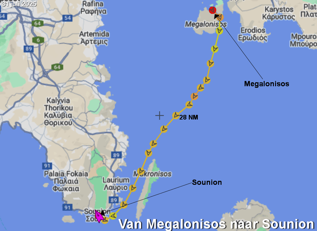 Van Megalonisos naar Sounion op mijn verjaardag (31 juli)
