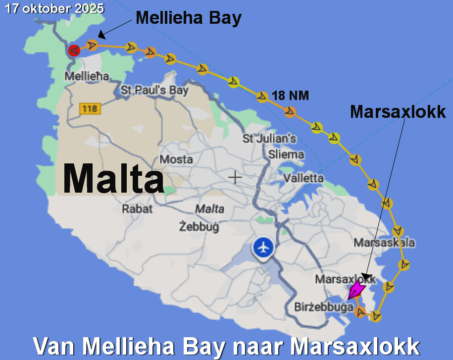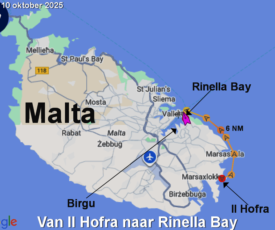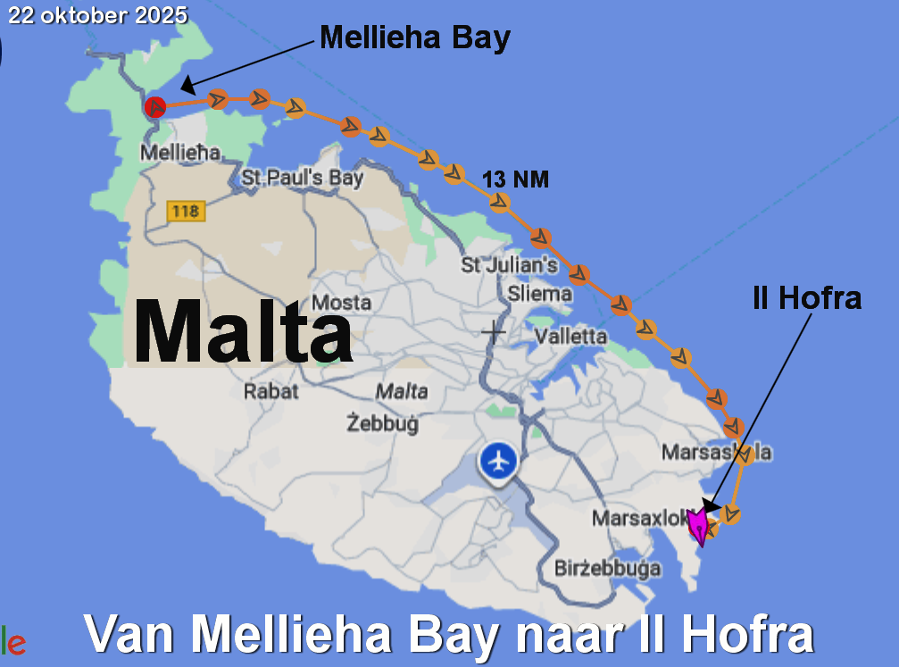 Van Porto Palo naar Il Hofra i Kbira, Malta (7 – 9 oktober)