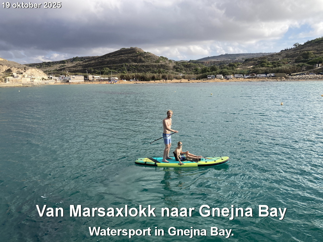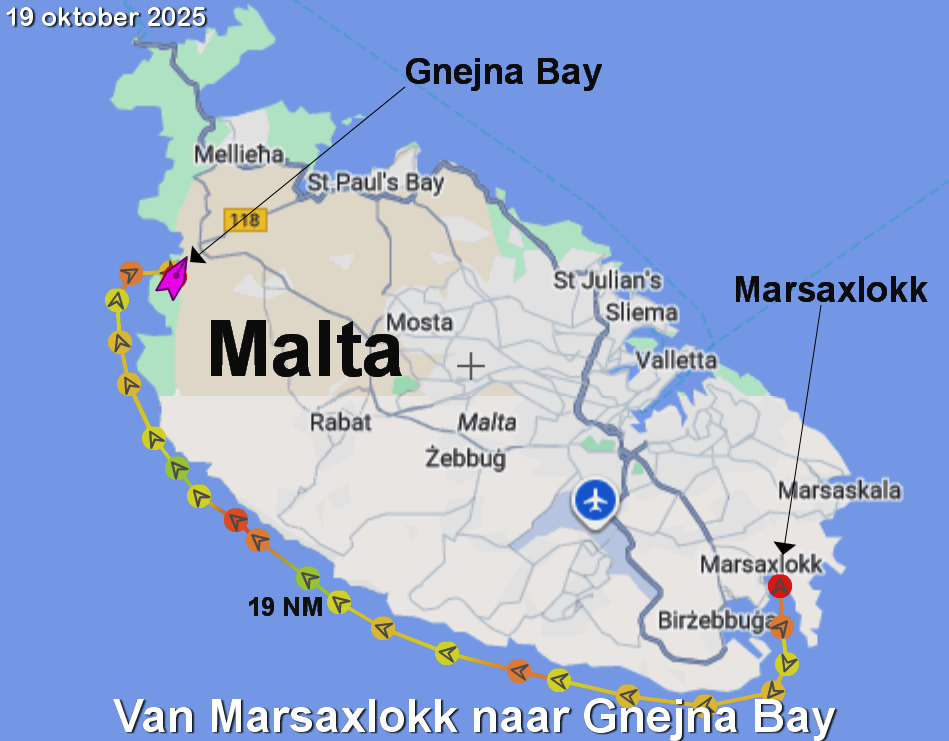 We besluiten langs de zuidkant van Malta te zeilen. Daar wordt iets meer wind voorspeld. Helaas is het kruisen en is er te weinig wind. De stukken tegen de wind in motoren we. Dat komt er op neer dat we tot Gnejna bay motoren. Daarna kunnen we zeilen.