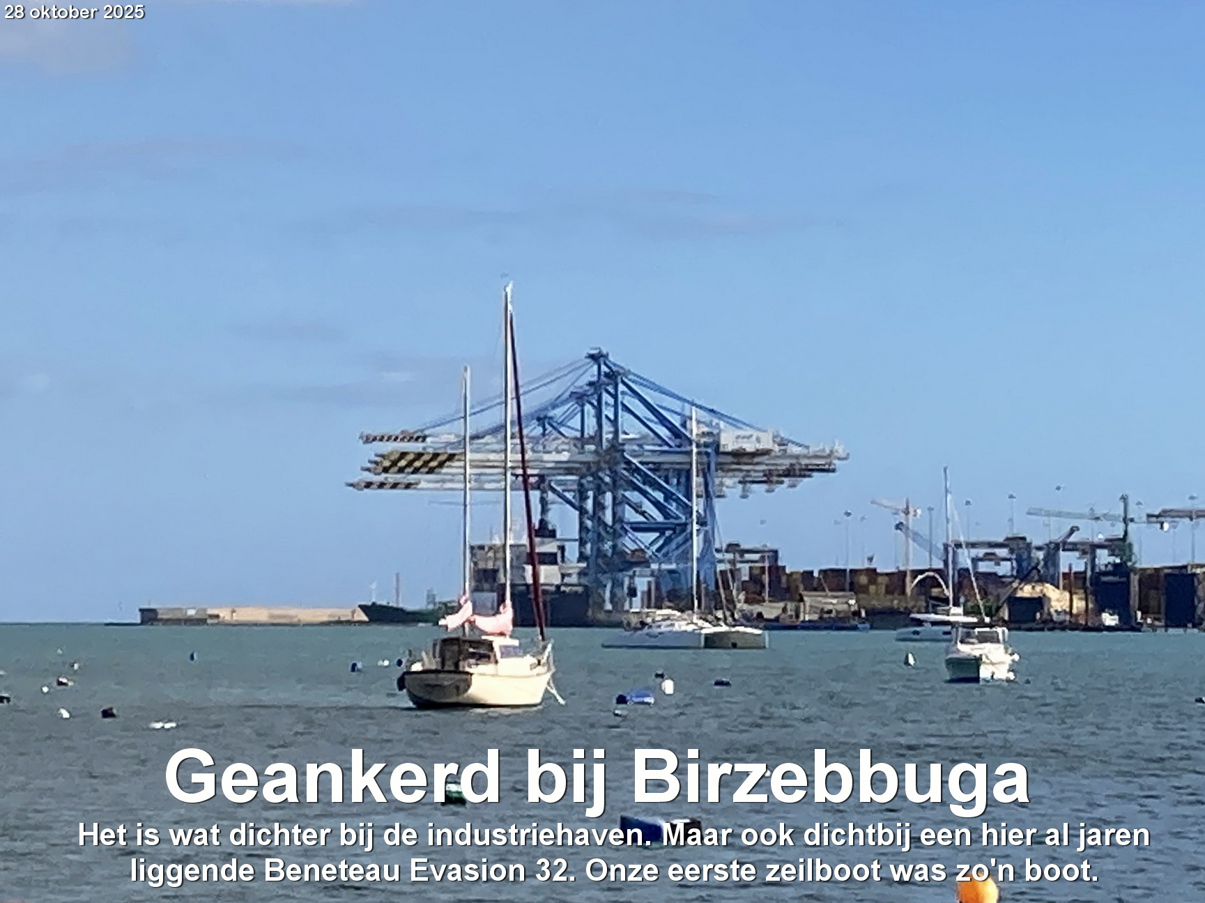We zien er ook een Beneteau Evasion 32 liggen. Hetzelfde type als onze eerste zeilboot.